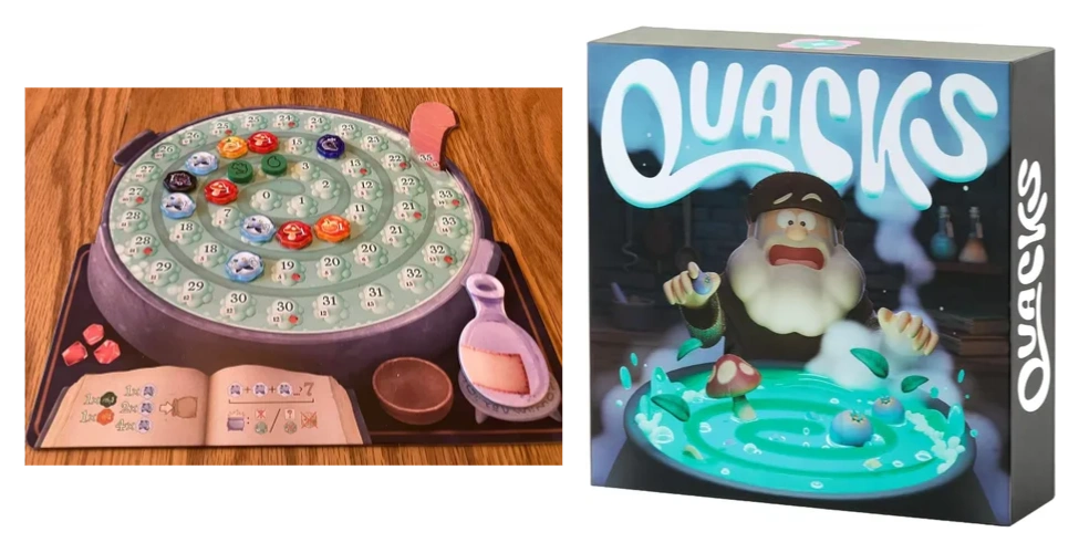 A push-your-luck game where players draw ingredient tokens from a bag to brew magical potions. Each round, the tension builds as you decide whether to keep drawing your ingredients for more points or stop before your potion explodes.