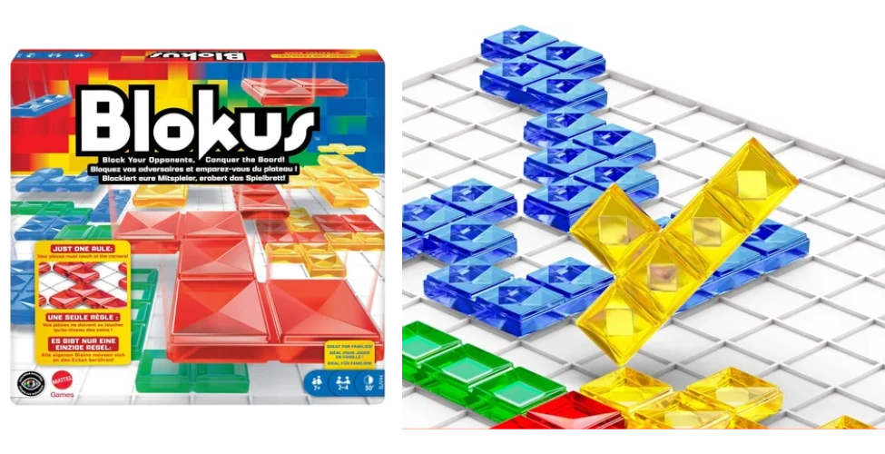 Blokus is an easy-to-learn game of shapes and territory, where every one of your pieces must connect corner-to-corner. With every player doing the same, the board quickly fills up, and the player who places the most pieces wins.